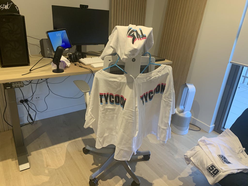 - Short Sleeve Sweatshirt in White with Tycoon logo on back: